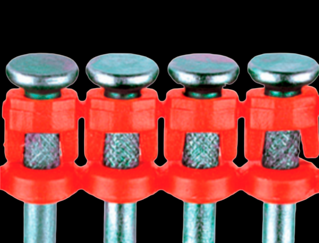 Wysokiej jakości gwoździe stalowe w taśmach, zaprojektowane do stosowania w twardych materiałach, takich jak beton i stal, ale także w materiałach miękkich.