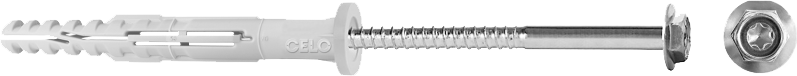 W przypadku kotew CELO kołek jest dostarczany wraz z pasującą do niego śrubą, co pozwala zaoszczędzić czas potrzebny na wybór śruby zabezpieczającej pasującej do kołka i przyspieszyć proces instalacji. W ten sposób można mieć pewność, że kotwa jest optymalnie rozłożona, a tym samym mocno blokuje się w wywierconym otworze.